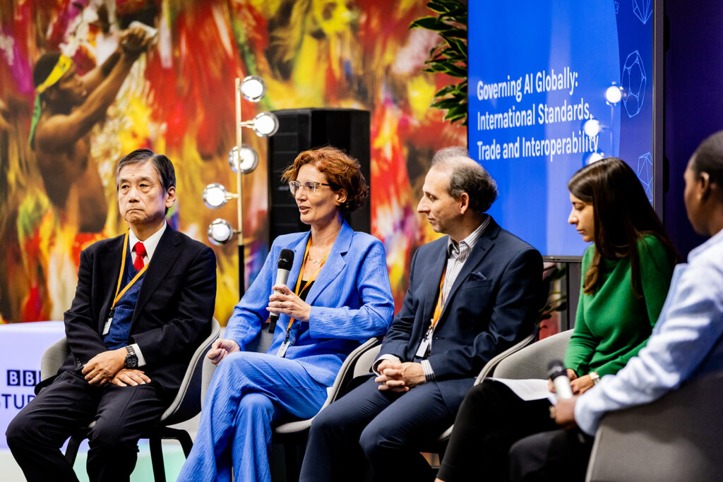 Aurelie Jacquet, Committee Chair of AI Standards Australia, speaks at the panel “Governing AI Globally: International Standards, Trade and Interoperability”