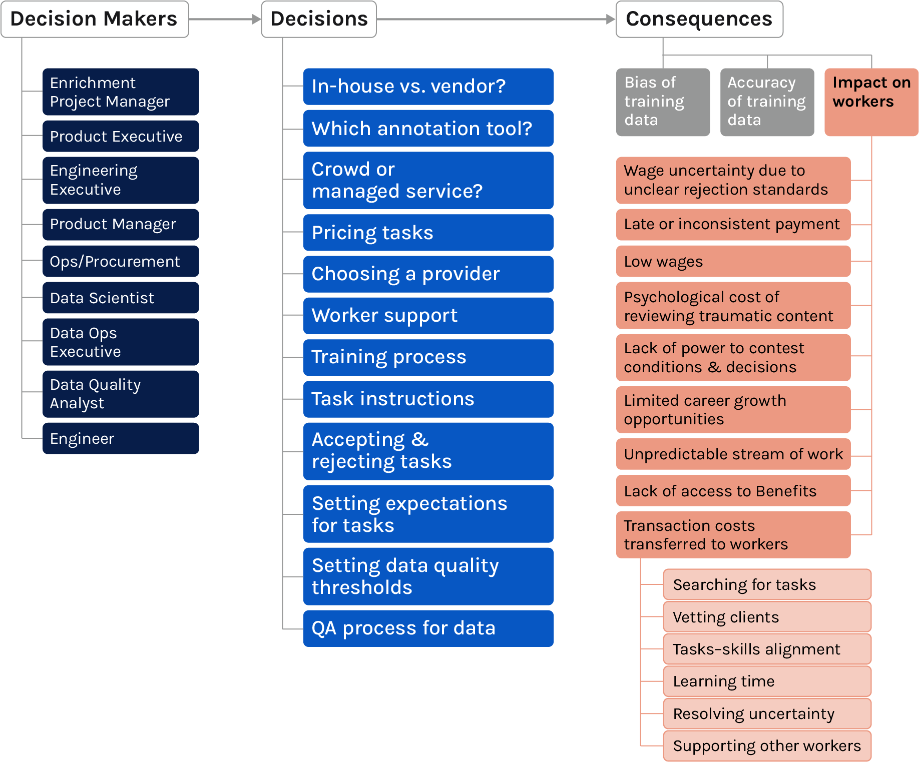 This paper draws heavily on insights and input gathered during semi-structured interviews with members of the AI enrichment ecosystem conducted throughout 2020 as well as during a five-part workshop series held in the fall of 2020. The workshop series brought together more than 30 professionals from different areas of the data enrichment ecosystem, including representatives from data enrichment providers, researchers and product managers at AI companies, and leaders of civil society and labor organizations. We’d like to thank all of them for their engaged participation and for valuable feedback. We’d also like to thank Elonnai Hickok for serving as the lead researcher on the project and Heather Gadonniex for her committed support and championship. Finally, this work would not be possible without the invaluable guidance, expertise, and generosity of Mary Gray.