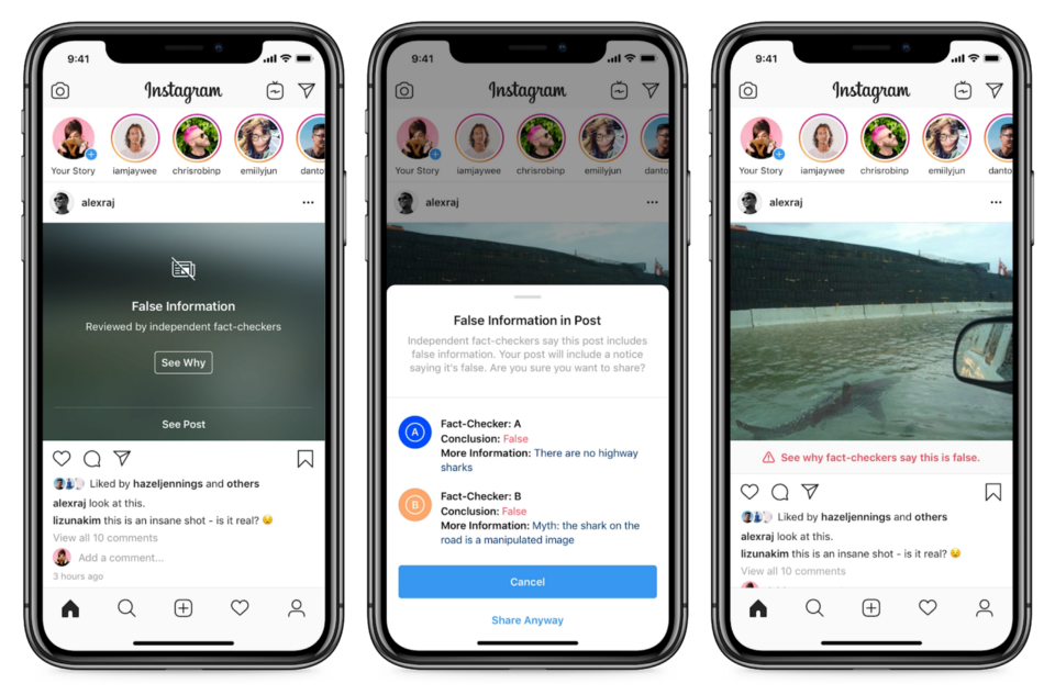 For an example of labeling manipulated media, see Facebook’s Blog: Combatting Misinformation on Instagram