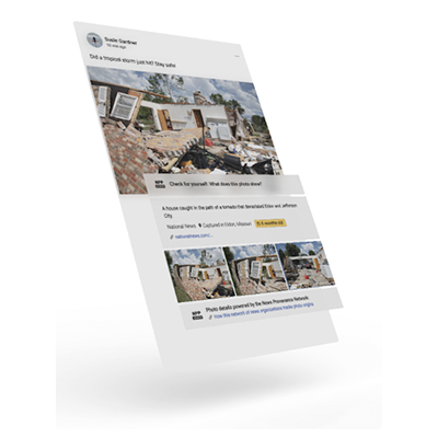 Rather than frame the label in terms of what’s inaccurate, platforms should elevate the accurate details that are known. Describe the accurate facts rather than simply rate the media in unspecific terms while avoiding repeating the falsehoods [1], [2], [3]. If it’s possible, surface clarifying metadata, such as the accurate location, age, and subject matter of a visual.
