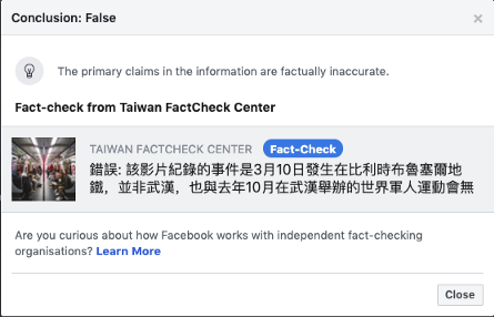 For example, is the goal to have the user click through to more information about the context of the media? Is it to prevent users from accessing the original media (which Facebook has cited as its own metric for success)? Are you trying to reduce exposure, engagement, or sharing? Are you trying to prompt searches for facts on other platforms? Are you trying to educate the user about manipulation techniques?