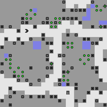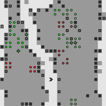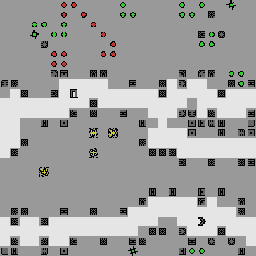 Despite its name, Conway’s Game of Life is not actually a game—there are no players, and there are no choices to be made. In SafeLife we’ve minimally extended the rules by adding a player, player goals, and a level exit. At each time step, the player can choose to move one space along the board, create a new life cell in an adjacent space, or destroy a cell in an adjacent space. By judiciously creating and destroying life cells, the player can build up quite complicated patterns (as seen above!). By matching these patterns to goal cells, the player earns points and eventually opens the exit to the next level.